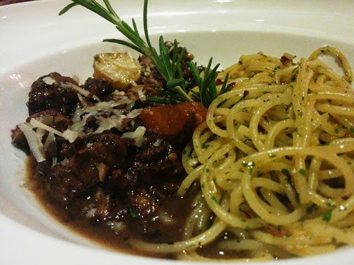 | Red Wine braised Lamb Ragout with Buttered Spaghetti |