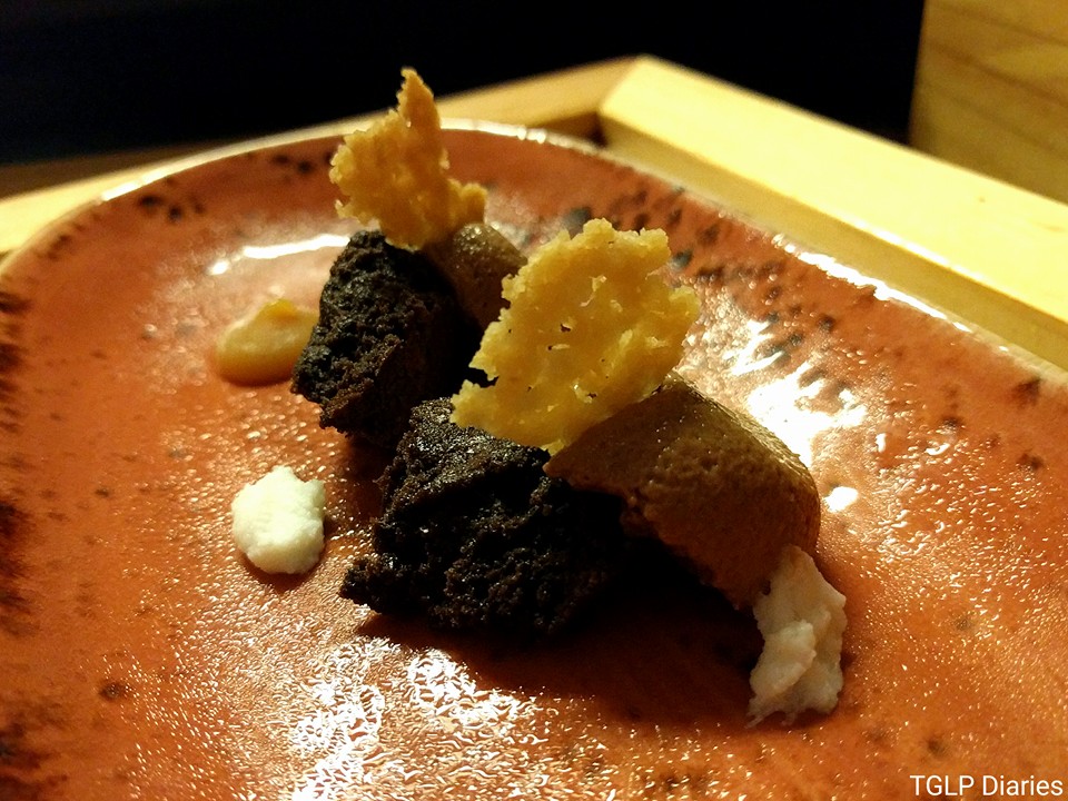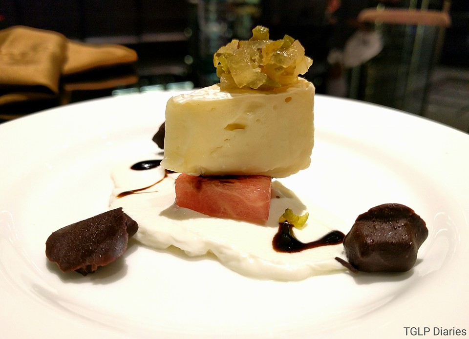 Soon after, an unexpected course arrived… Chevre, Brie and Parmesan Pebbles is a cheese course that doesn’t work as a palette cleanser as much as helps in transitioning towards the desserts. Striking off the perfect balance between savoury and sweet, I was amazed with the way this was put together… a slice of watermelon and parmesan stuffed chocolate pebbles completed this one-of-a-kind course.
