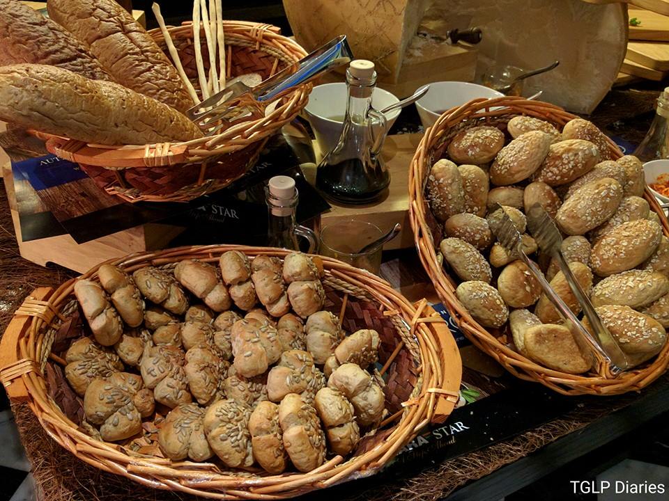 From French Baguette, Lavash (Flat Thin Crispy Bread) Bread sticks to the common soft and hard bread rolls topped with pumpkin and other seeds, accompanied with a block of Parmagiano Reggiano (Parmesan Cheese) and fresh Bocconcini (Fresh Buffalo Mozzarella) immersed in flavoured olive oil (Pesto and Spicy Pepper)… a variety that one can never get enough of.