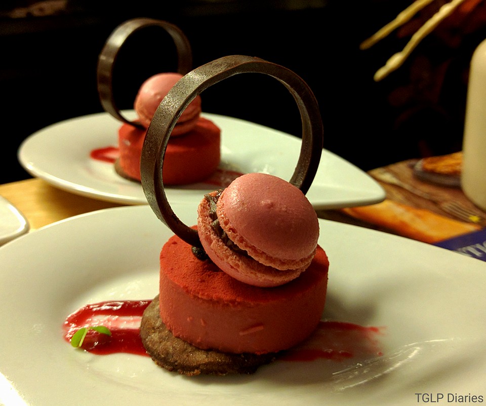 Last but not the least, it was time to check out the desserts. Two very different preparations, the Raspberry Custard with cocoa biscuit and a macaroon and Ginger Mousse with soft cocoa biscuit, rosemary snow and caramel graced our table. Now for those who truly love the flavour of ginger in every form, will certainly love the ginger mousse. Personally I found it too overpowering but the caramel and soft cocoa biscuit sort of balanced it off. On the other hand, I thought the Raspberry Custard felt more like a cheesecake of sorts, yet tasted like a dream. The macaroon with it was light and added that perfect hint of texture. Gotta give extra points for the innovative choice of fine dine style desserts.
